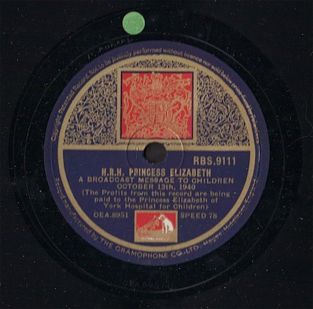 HMV // HRH PRINCESS ELISABETH - A Broadcast Message to Children, Oct. 13th 1940 (The profits from this record were being paid to The Princess Elisabeth of York Hospital for Children) ©1940