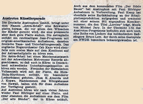 Astra Schall als Untermarke der österreichischen Austrophon, bzw. Austroton in Deutschland.