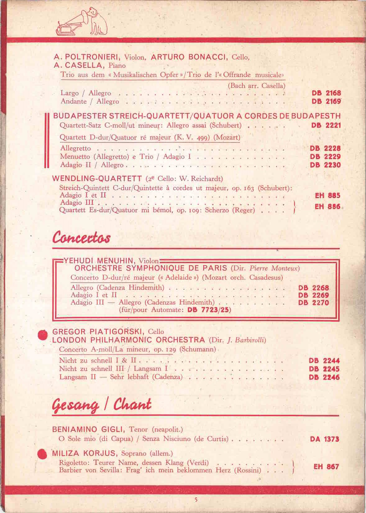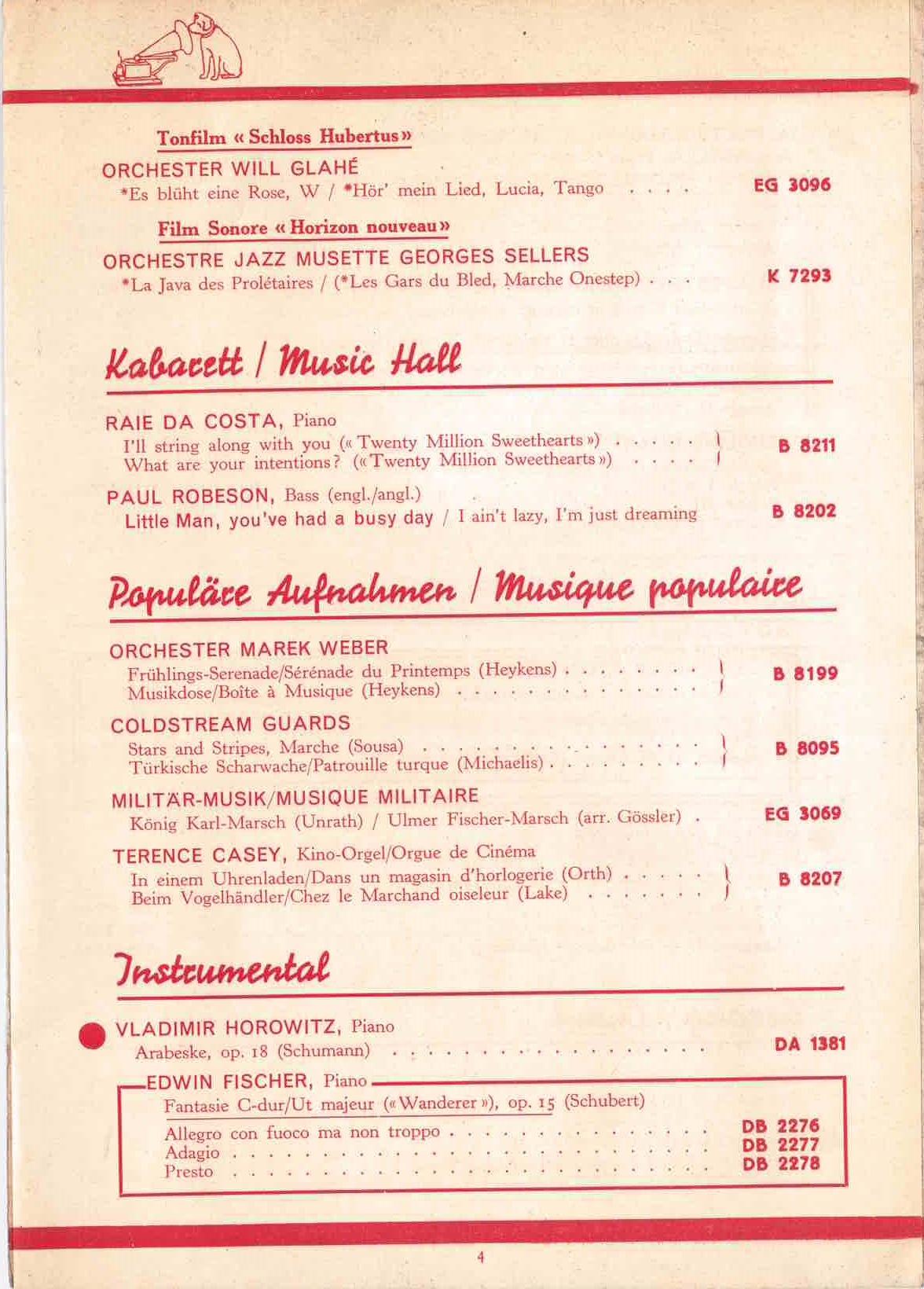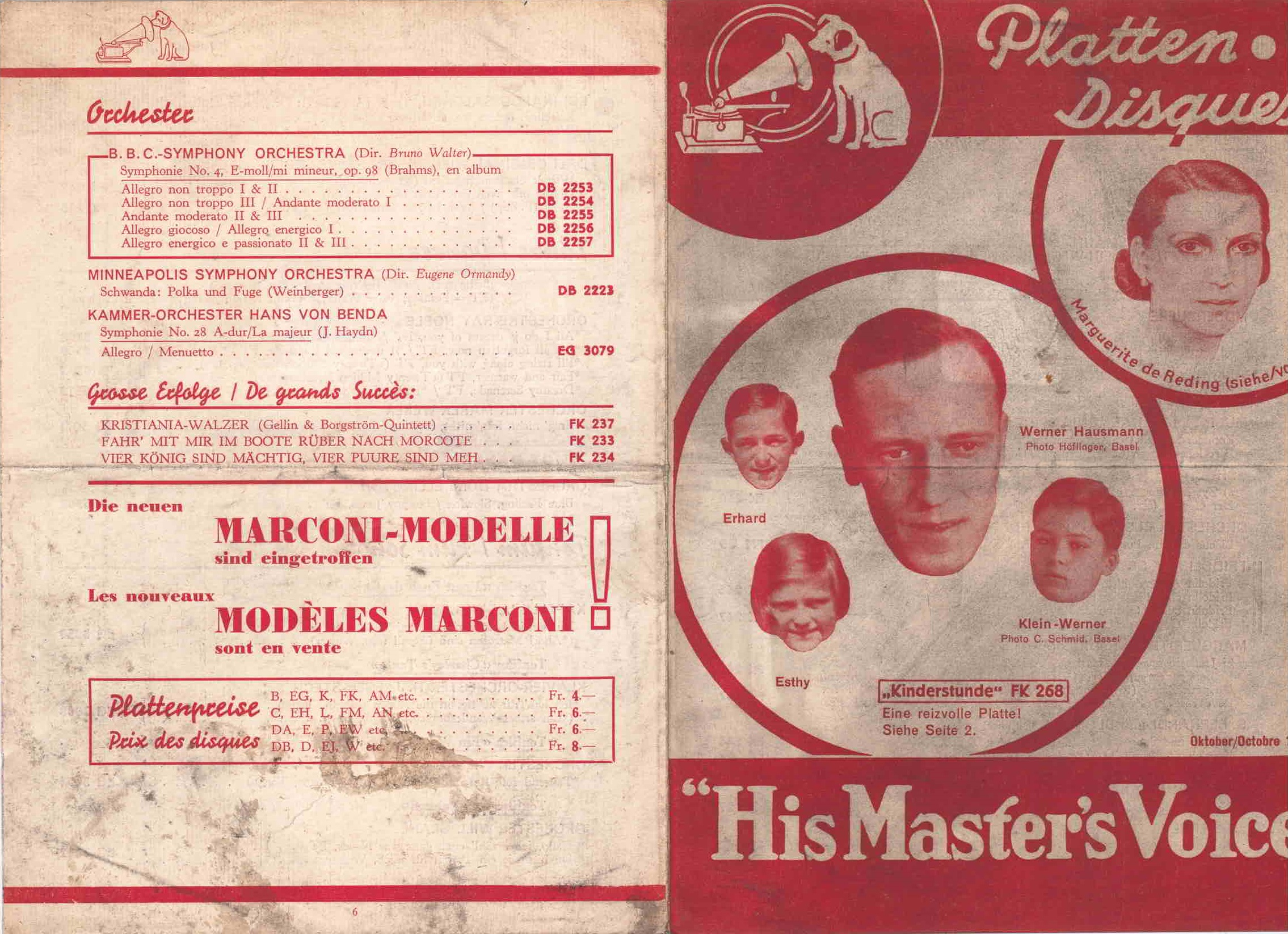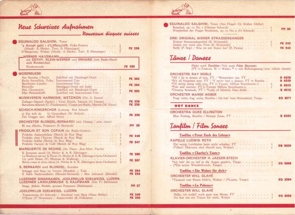 HMV Schweiz Neuaufnahmen Oktober 1934