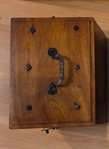 Die Abmessungen des Kastens sind etwa Länge 34 cm x Tiefe 27 cm x Höhe 20 cm.